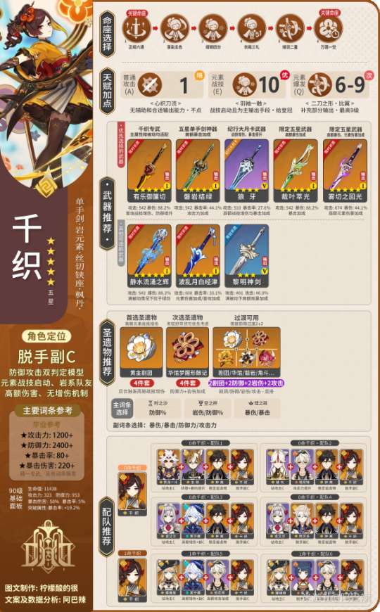 考虑到部分小伙伴时间紧迫,特此加入千织的简略版图文攻略展示,想要快速熟悉千织培养攻略的小伙伴可以直接查看下图,想要看详细攻略的小伙伴可以看详细分析部分!