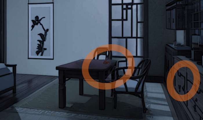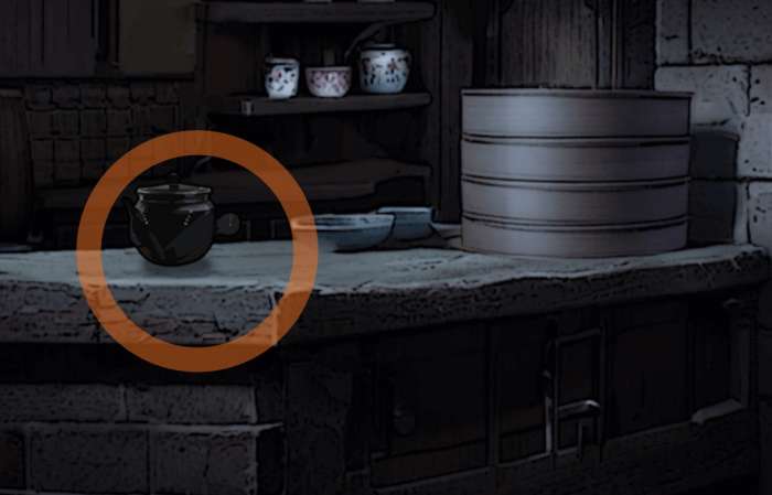 堂屋:拿取桌子上的葱油饼,将药罐放在桌子上方的蒲垫上,将墙灰和蜘蛛网放进药罐里,药方放在桌子上,将招魂铃挂到红绳子上,点击招魂铃,前方小高能,召唤女鬼。