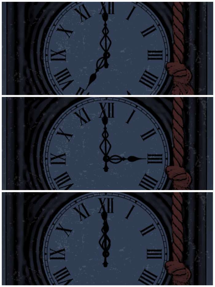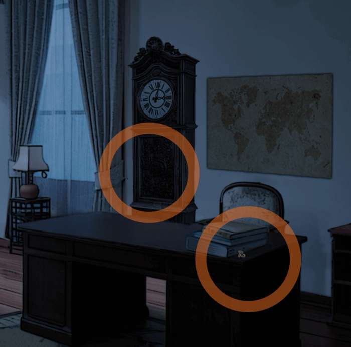 东院:杨修平房间:拿走桌子上的螺丝,将机械图纸放进靠墙坐钟里,拉动掉下来的红绳子,钟每响一次就停到一处时间,分别是七点、三点、十二点,按时辰是戌寅子(后面重开游戏时发现这个时间是随机的,所以只能自己记住三个时间对应的三个时辰)。
