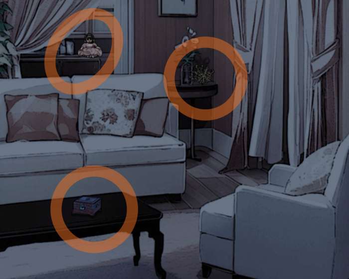 杨婉芝房间:拿走桌子上的满天星和后面台子上放的洋娃娃,桌子上的盒子根据文思堂获得的戌寅子时辰线索打开,得到娃娃的眼珠(这个时辰的答案是随机的,自己对坐钟的时间)。