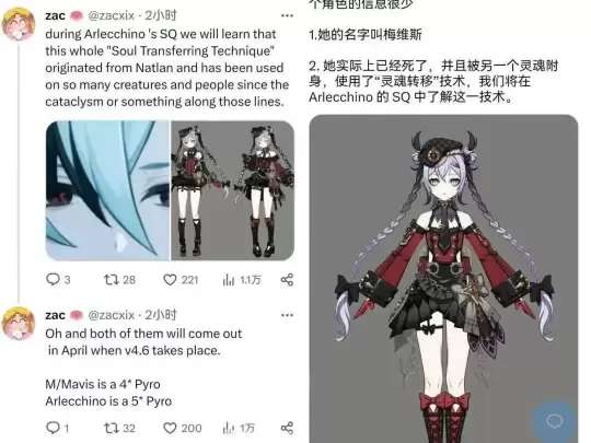 监狱少女哥特妹的真名叫梅维斯,她将在游戏的4.6版本中登场,很可能是一个五星角色;关于纳塔领域中灵魂转移的重生术,不过具体的情况还不太清楚。总之,这些消息给玩家们带来了期待和兴奋。