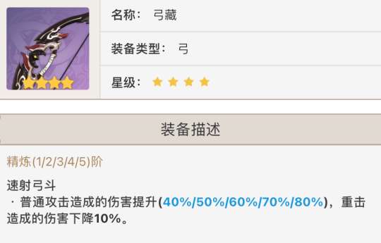 弓藏的武器效果与众不同,在弓手都玩重击流的模式下,弓藏则是反其意而行之,专门提升普攻的伤害,满精更是高达80%!