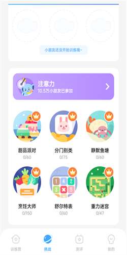 4、点击挑战可以挑战各种小游戏,帮助用户养成好的注意力。