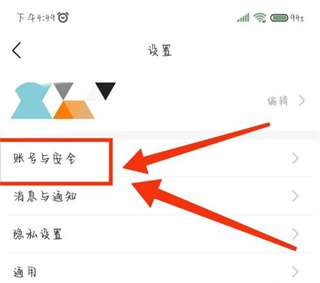 2、然后在设置的页面中可以看到有账号与安全、消息与通知、隐私设置等功能,我们点击【账号与安全】;