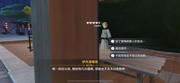 玩家可以在璃月港找到旅行商人伊凡诺维奇,而根据任务过程中的对话的选项,还有机会额外提升和伊凡诺维奇的好感度。