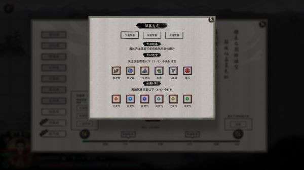 当然相对应的人道筑基所需的材料最少,天道筑基需要的材料则最多,普通难度下推荐直接选择天道筑基。