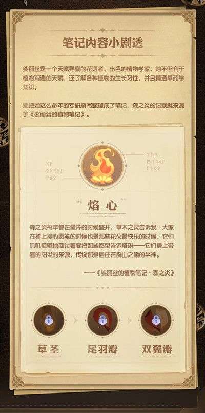 它们是源自塔琳的光辉,森林里的居民们在森之炎盛开的时候将它们摘下,提成灯火就能驱散寒风邪祟。