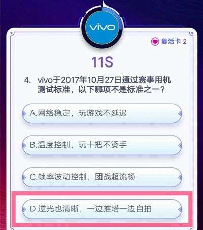 问题:4.vivo于2017年10月27日通过赛事用机测试标准,以下哪项不是标准之一?