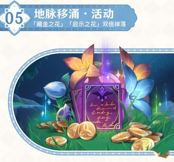活动期间,成功挑战「地脉衍出·藏金之花」或「地脉衍出·启示之花」领取秘宝奖励时,消耗「原粹树脂」可获得双倍奖励,每天一共可享受3次双倍掉落机会。
