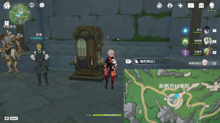 1、玩家需要先前往新枫丹科学院,到达之后需来到东北边的饮料机这里并与之进行交互;
