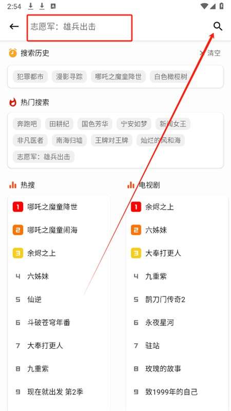 2、可以点击搜索框,输入影视名称点击搜索即可;
