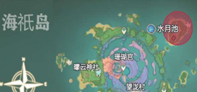 1、玩家需要现来到图上的水月池的位置,在这里先要玩家去解开谜题,因为只有这样才可以开启池中宅邸,可以获取成就奖励;