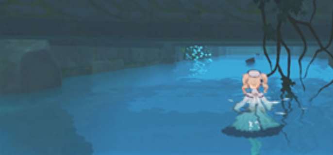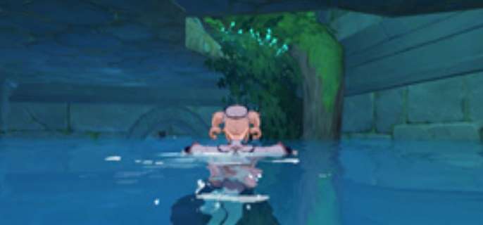 5、玩家可以这时候跳到水池当中,你会看到看到一个裂缝,按照这里努力的游进去;