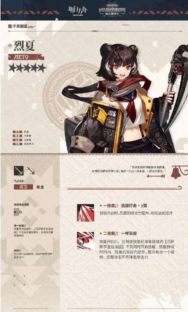 “博士,您好。关于明日方舟中的烈夏角色,您认为这个角色值得培养吗?早期该角色就已经出现并受到欢迎。虽然我们已经相当熟悉了,但我还是需要完成任务,向您进行报到。我是乌萨斯学生自治团的烈夏。”