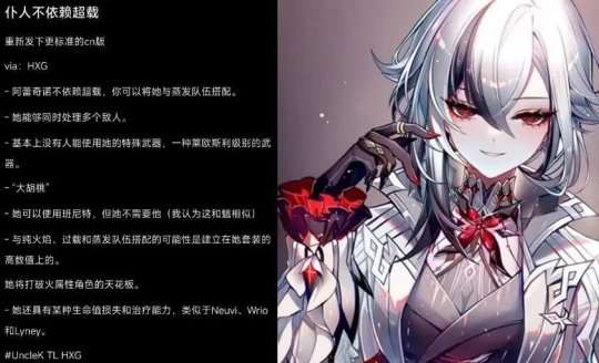 而说起后续4.6卡池的相关消息,也终于出炉,根据舅舅们爆料的最新消息来看,仆人的定位大致如下,总的来说,仆人并不依赖超载,还可以将她与蒸发队伍搭配,仆人的武器也非常特殊,基本上没有角色可以使用,可以理解为莱欧斯利一样的武器。