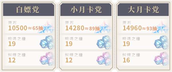 注:购买月卡的300结晶不计入,有需要可自行转化