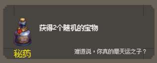 这个是纯随机,即使你已经获得过的宝物也会加入随机库,除了秘药自身。