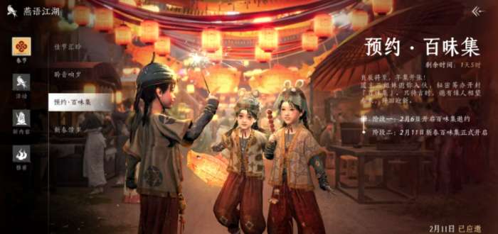 本周三上线的重头戏是新春百味集活动。这个活动分成了四个不同的板块,分别是寻百味、游禧集、馈春岁还有录嘉时,每个板块都准备了各种任务让大家去完成,完成之后,可以拿到海量的奖励。活动的核心玩法其实挺有意思,少东家要和道主三姐妹一块开办百味集市,到处去招募商铺入驻,然后认真打理这些摊位,想办法让集市的人气和财气都涨起来。除了能品尝到各种美食,活动里还加了不少小游戏进去,全都是围绕新春主题设计的,玩起来挺欢乐。
