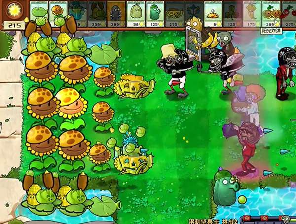 1、阳光植物在开局草地上尽可能多得放置,种植一个3x3区域的向日葵,僵尸就靠玉米卷心菜去打。