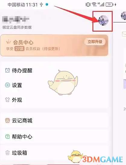 1、打开云记App,点击个人头像。如图: