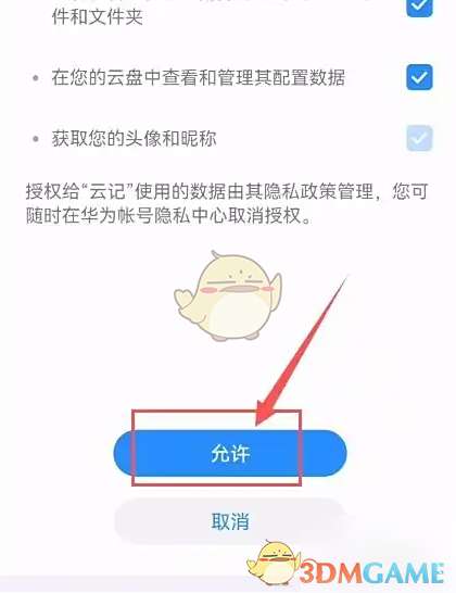 3、进入云同步设置界面,选择“允许”即可。如图: