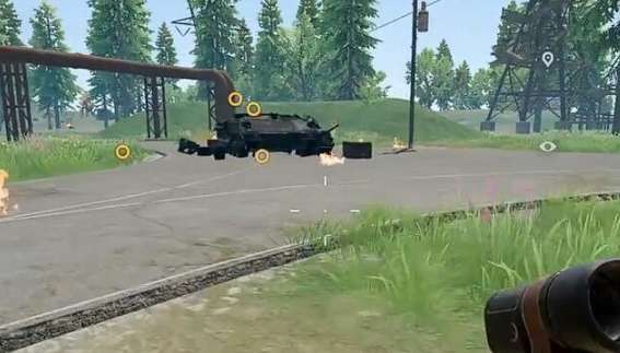 在选择好武器之后,那接下来就是关键的攻击时机还有站位,这直接关系到你能不能有机会活着拿奖励。坦克基本上都是沿着固定路线去巡逻,玩家可以躲在断墙的后面或者是集装箱的后面。等到坦克慢慢的靠近在30米以内屏幕中就可以看清楚炮管的细节,此时就可以直接探头,然后扔出火箭弹。记住每一发之间要间隔两秒,否则武器过热很有可能就会导致卡弹,那就麻烦了。万一被坦克转向锁定,也无需过于的慌乱,周围的大岩石还有废弃的车辆都是救命的掩体。