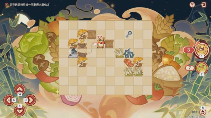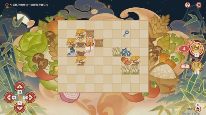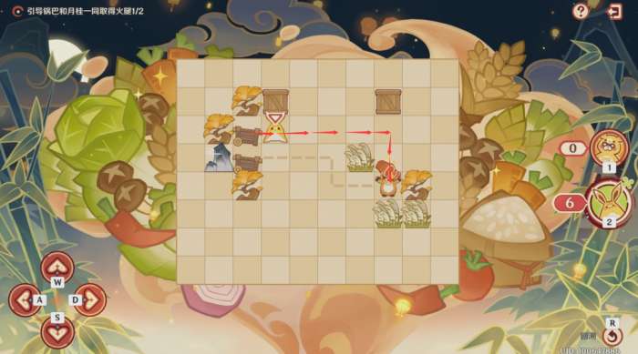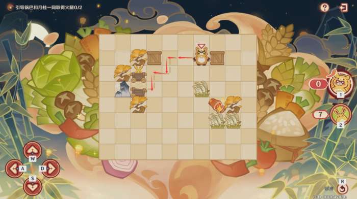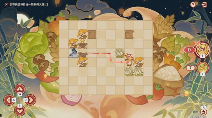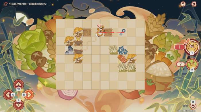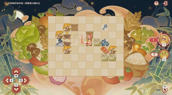 第一步:控制锅巴往上推左边的木箱