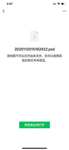 1、首先点开微信中的psd文件,然后点击“用其他应用打开”。