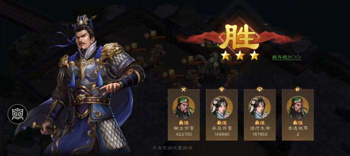 如果想拿全灭敌军,那么就打第二次,可以借大佬的强力吕布或者郭嘉等角色,慢慢推进就好了,因为已经3星了不用考虑回合限制了!如果同时达成全灭敌军和5回合过关,等级低的话的确不容易哦