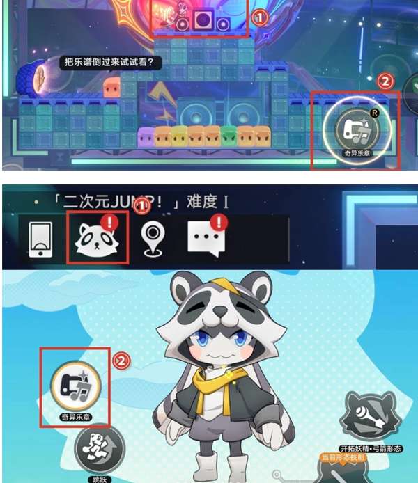2、可以点击左上角的浣熊图标,再点击【奇异乐章】后弹奏琴谱