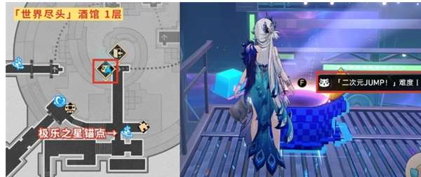1、回到「世界尽头」酒馆-极乐之星锚点这里的二次元JUMP,弹奏下方乐谱