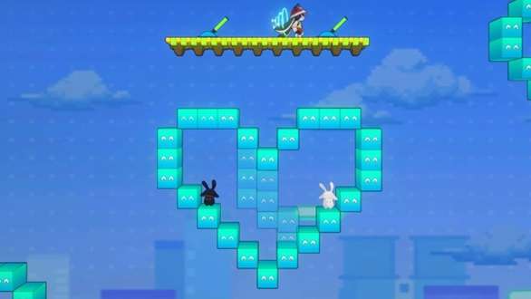 2、弹完后进到隐藏空间,跳到右边这个操作台操作2个遥杆,让2边合成一整个完整爱心就能达成【乐园变奏:兔子坡】成就