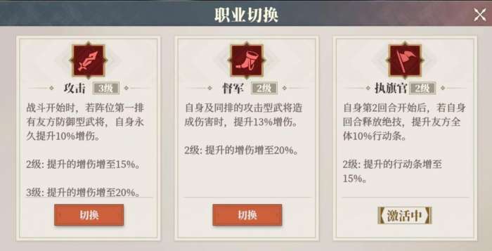 朱然的职业推荐选择【执旗官】,目前所有的执旗官职业武将绝技均为30战意消耗,而朱然是唯一一名20战意消耗的执旗官,大幅提高了长线战斗中执旗官触发全体拉条的性价比。