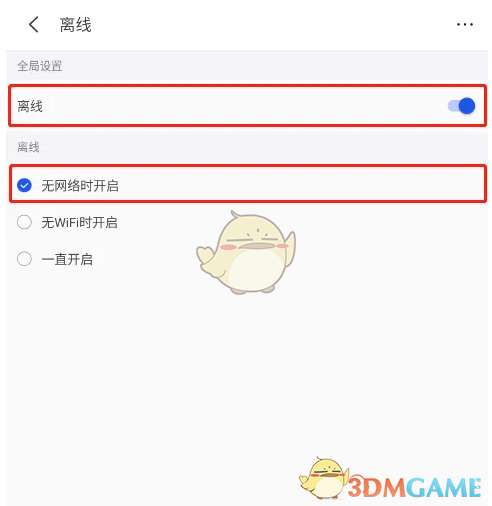 5、打开如下图界面,选择离线选项,点击开启后面的开关,然后点击勾选无网络时开启选项,这样就开启KK键盘的离线语音了。