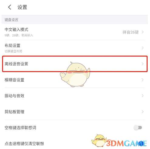 3、打开如下图界面,选择离线语音设置选项,点击打开