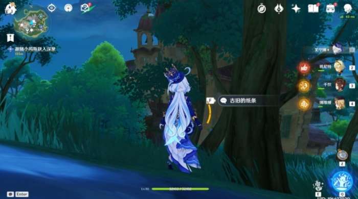 第一处,面朝群山之心。位于镇子东侧一处房屋后的树下,点击挖掘交互就会出现宝箱,开启后会留下一个古旧的纸条,如下图位置。