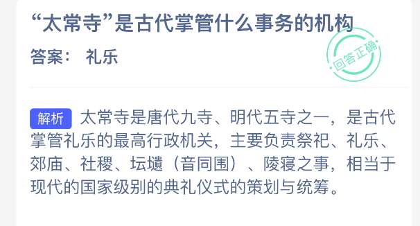 以上就是"太常寺"是古代掌管什么事务的机构?支付宝蚂蚁新村最新答案2026年1月16日,更多精彩内容,请点击关注pk游戏网更新!