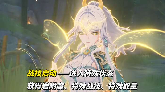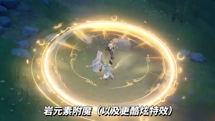 ①普攻获得岩元素附魔,持续站场普攻触发月结晶反应;
