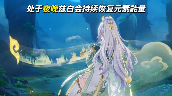 【探索天赋】在夜间兹白会持续恢复自己元素能量。一般此天赋仅大世界有效,深渊、幻剧等等特殊场景无效。