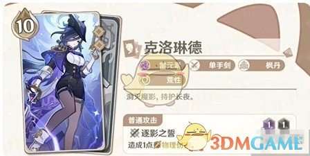 战斗行动:我方出战角色为克洛琳德时,装备此牌。