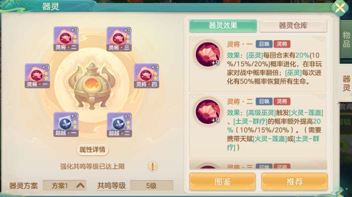 推荐器灵:灵将——进化场上[巫灵],提高[巫灵]打出特殊招式的能力
