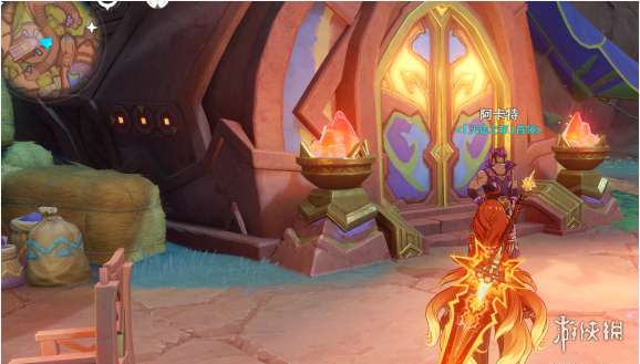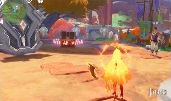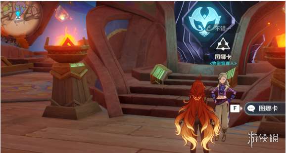 2、在旁边操纵突角龙或使用「沃陆之邦」部族成员撞击光盾炮口解锁珍贵的宝箱后,再次与科里对话。