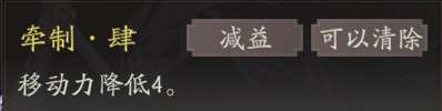 吕玲绮最重要的技能,被施加<牵制・肆>之后,骑兵也最多只有2移动力,而吕的再移动为3,换句话说就是可以放风筝全角色(部分aoe除外),包括她自己的<弧光掠影>以外。步兵类角色更是会直接罚站。