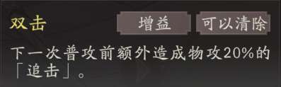 <双击>实战中一般要第二回合结束触发,第三回合主动攻击并且仅针对普攻生效,因此比较鸡肋。