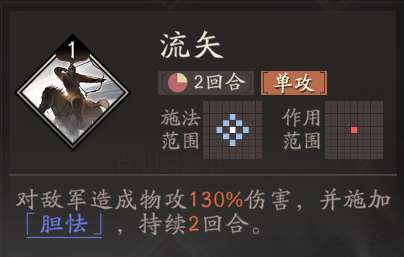 优质泛用技能,因为两个核心主动技能都是3回合冷却期,<奔袭>也是3回合冷却期,而且实战技能系数直奔150%,是个非常可靠的单体输出手段,推荐携带。