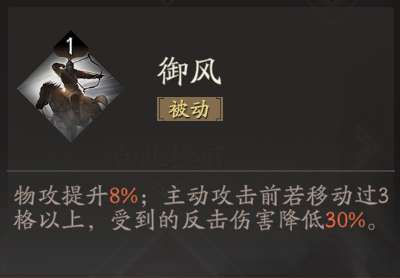 总体给的很早的被动,搭配臧霸对单伤害可以提升很多,不考虑使用范围技能的时候,可以携带增加自己的对单伤害。