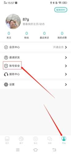 1、进入APP后,首先点击右下角“个人”,再点击页面中的“账号安全”;