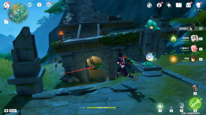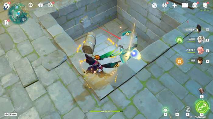 6,接着再来到下面遗迹,在这里有个限时挑战,完成挑战后旁边的铁门打开,拿上里面的遗迹石块。