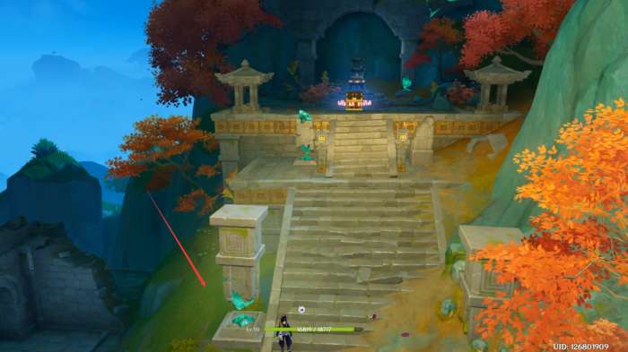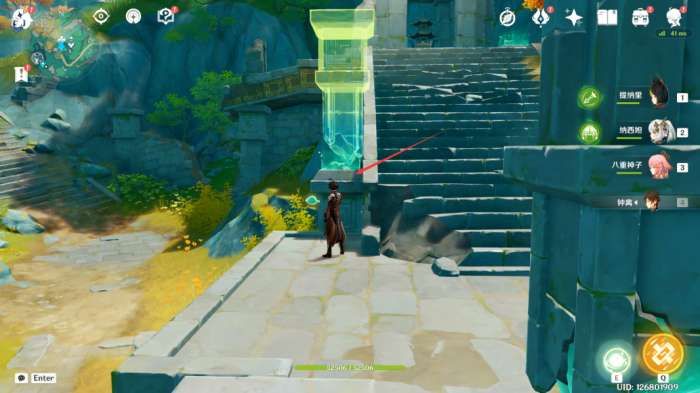 16,然后拿上稍大的遗迹石块,将其放在石梯左侧。