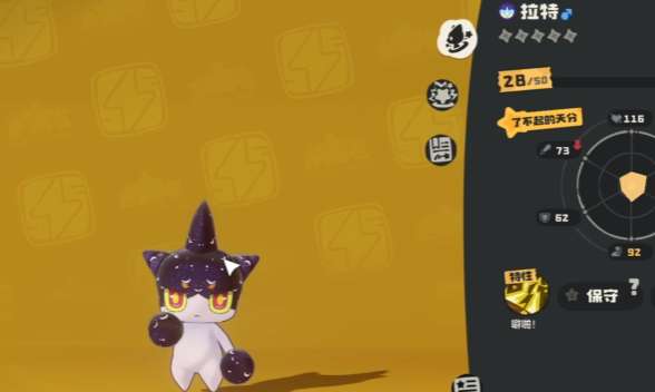 抓到拉特后先把等级升到40级,它会第一次进化成酷拉之后继续练级,等满足条件就能进化成终极形态风暴酷拉,而异色炫彩的外观,就是在进化成风暴酷拉这个阶段,靠变异玩法随机解锁的,不是每一只都能出,养成的时候性格选择特别关键,因为拉特主要靠魔攻打伤害,所以优先选保守、稳重这种能提升魔攻的性格,要是想让它出手更快,胆小、急躁这类加速度又不削弱魔攻的性格也很合适。